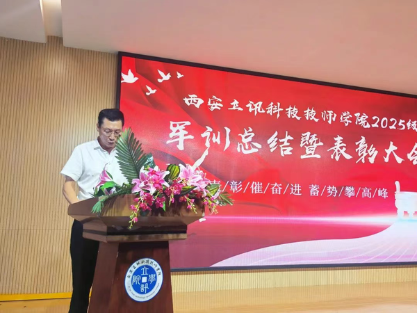 青春淬火,步履铿锵;迷彩飞扬,斗志昂扬。西安立讯科技技师学院2025级新生为期15天的军事训练,于8月22日圆满落下帷幕。当日上午,庄严恢弘的军训汇演在学院操场隆重举行;下午,总结表彰大会在学院报告厅盛大召开。学院刘军副院长及各部门中层领导出席活动,与全体新生共同见证这场青春与汗水的荣光时刻。 01 汇演风采 汇演展风采,步履铿锵显英姿 沙场点兵展雄姿,青春献礼新时代。8月22日上午,西安立讯科技技师学院2025级新生军训汇报表演在学院运动场隆重举行。2025级新生以昂扬的斗志、严整的军容、磅礴的气势,向学院领导和师生们呈上了一份精彩的“入学第一课”满分答卷。学院军训团长及各部负责人一同检阅了军训成果。