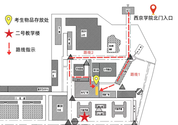 北门距离2号教学楼步行大约10分钟。请各位考生合理规划出行时间,至少提前一小时到达考场,开考15分钟后不再允许进入考场。