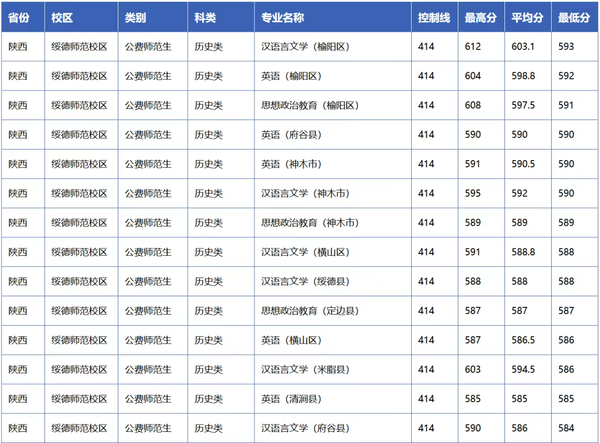 榆林学院2025年历史公费师范生在陕西招录分数线